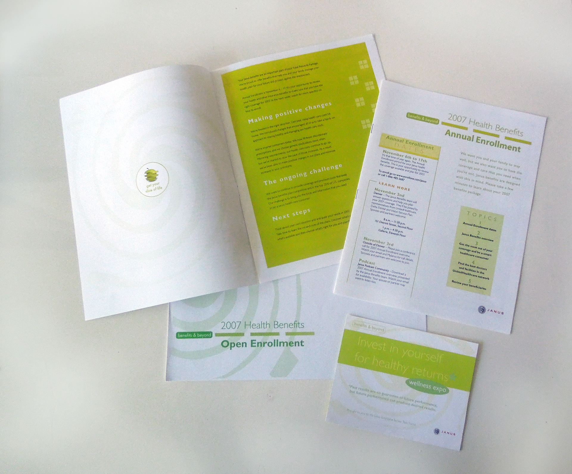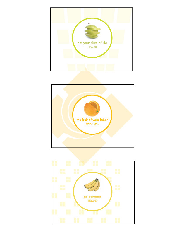 Produced web and print material for wellness event. The fruit theme encourages the employee to "Invest in Yourself." The theme continued with a "slice of life," "the fruit of your labor" and simply "go bananas."